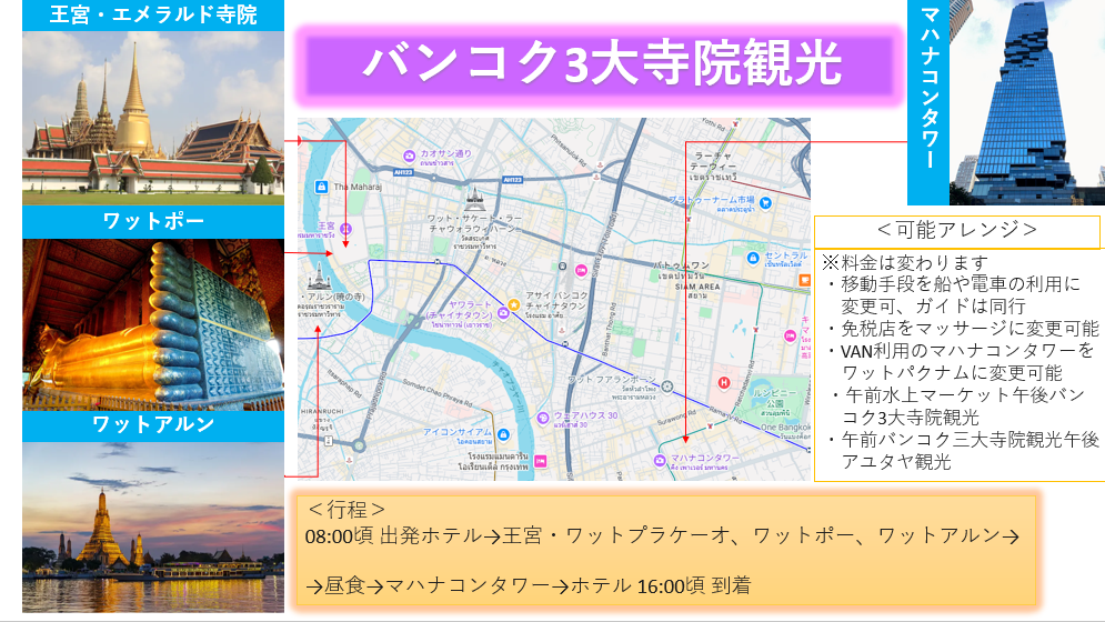 バンコク3大寺院+水上マーケットと世界遺産アユタヤ+ピンクガネーシャ